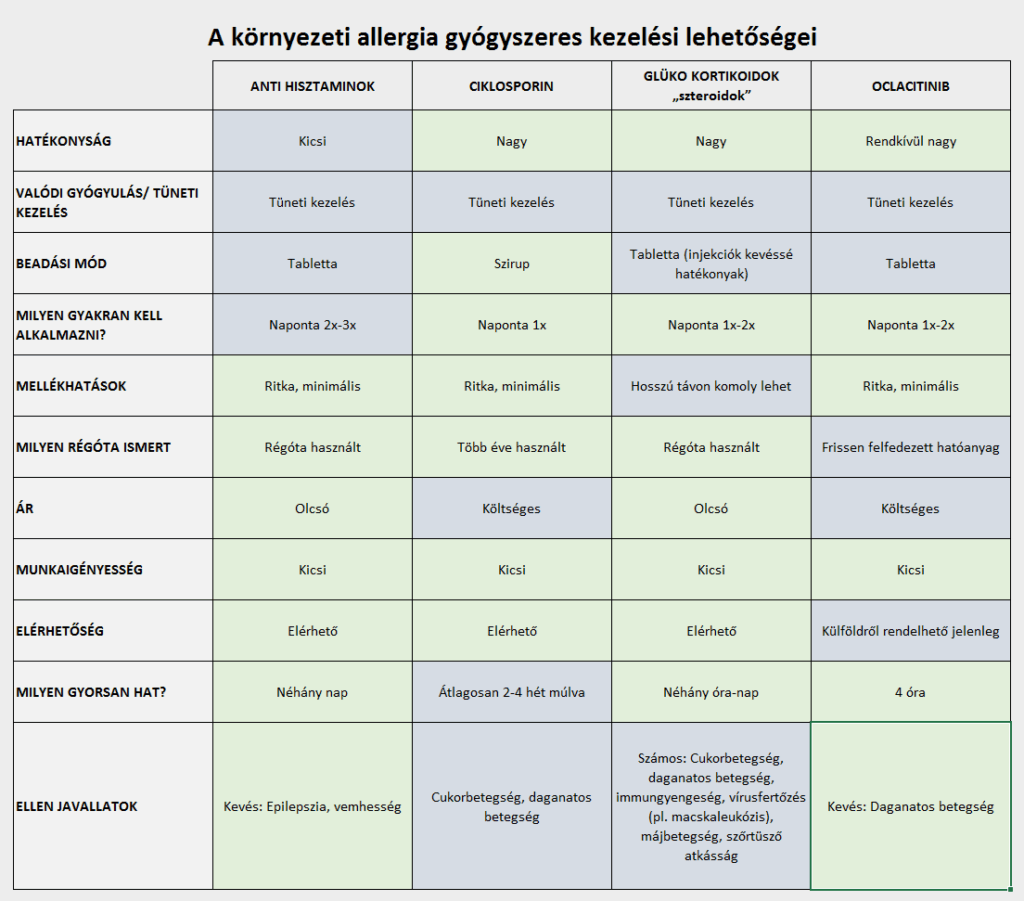 A ciklosporin és oclacitinib gyógyszerek új és nagy hatékonyságú, biztonságos hatóanyagok, azonban költségesebbek és utóbbi egyelőre csak külföldről rendelhető.