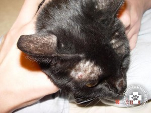 Macskák esetében a viszketést jóval nehezebb tetten érni. Általában a mosakodás gyakorisága, hossza nő, amelynek következtében a szőrzet, a könnyebben elérhető helyeken (pl.: hát, ágyék és has) töredezetté vagy ritkulttá válik. Néha a szőrritkult bőrterületről vett szőrminta mikroszkópos vizsgálatával lehet csak igazolni, hogy a szőrszálak letöredeztek. Az intenzív mosakodást, esetleg a szőrzet rágcsálását, tépését sokszor az állat elvonultan vagy éjszaka végzi, és így közel nem olyan feltűnő, mint kutya esetében a folyamatos vakarózási inger.
